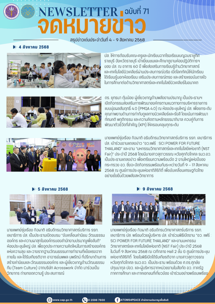 สรุปข่าวเด่นประจำสัปดาห์ ฉบับที่ 71 (4 – 9 ส.ค. 2568)สรุปข่าวเด่นประจำสัปดาห์ / 28 สิงหาคม 2568 จำนวนคนดู: 2