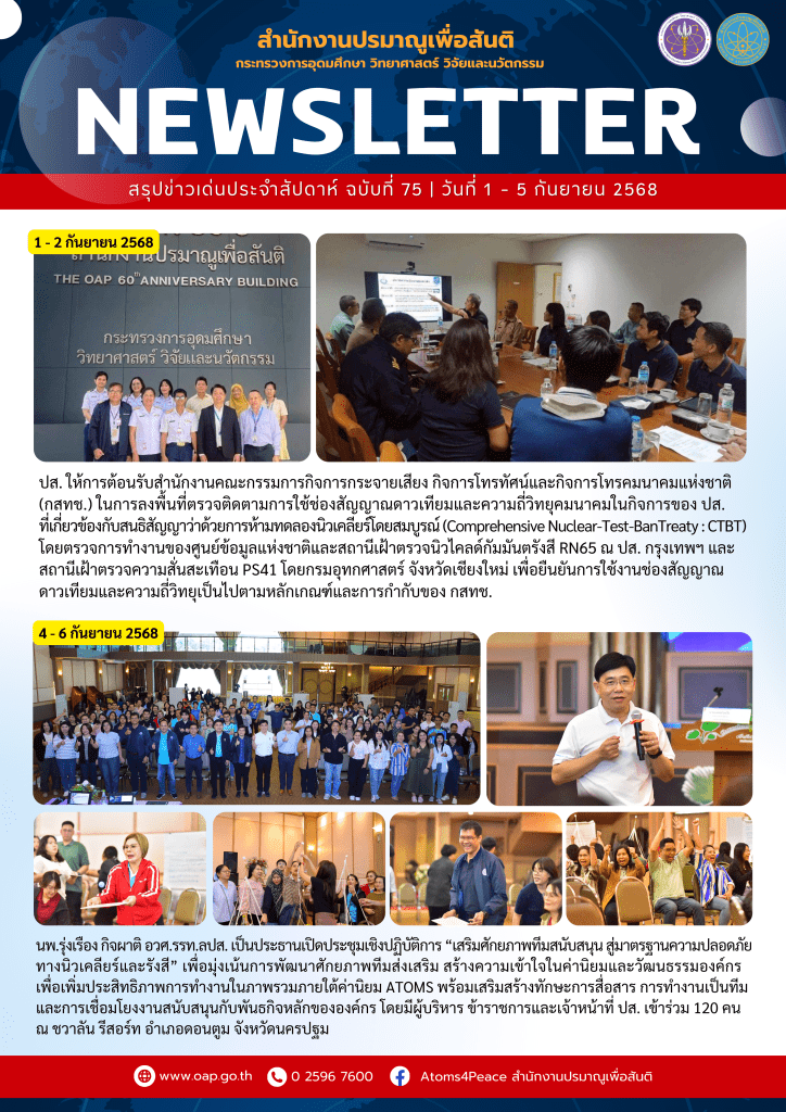 สรุปข่าวเด่นประจำสัปดาห์ ฉบับที่ 75 (1 – 5 ก.ย. 2568)สรุปข่าวเด่นประจำสัปดาห์ / 8 กันยายน 2568 จำนวนคนดู: 1