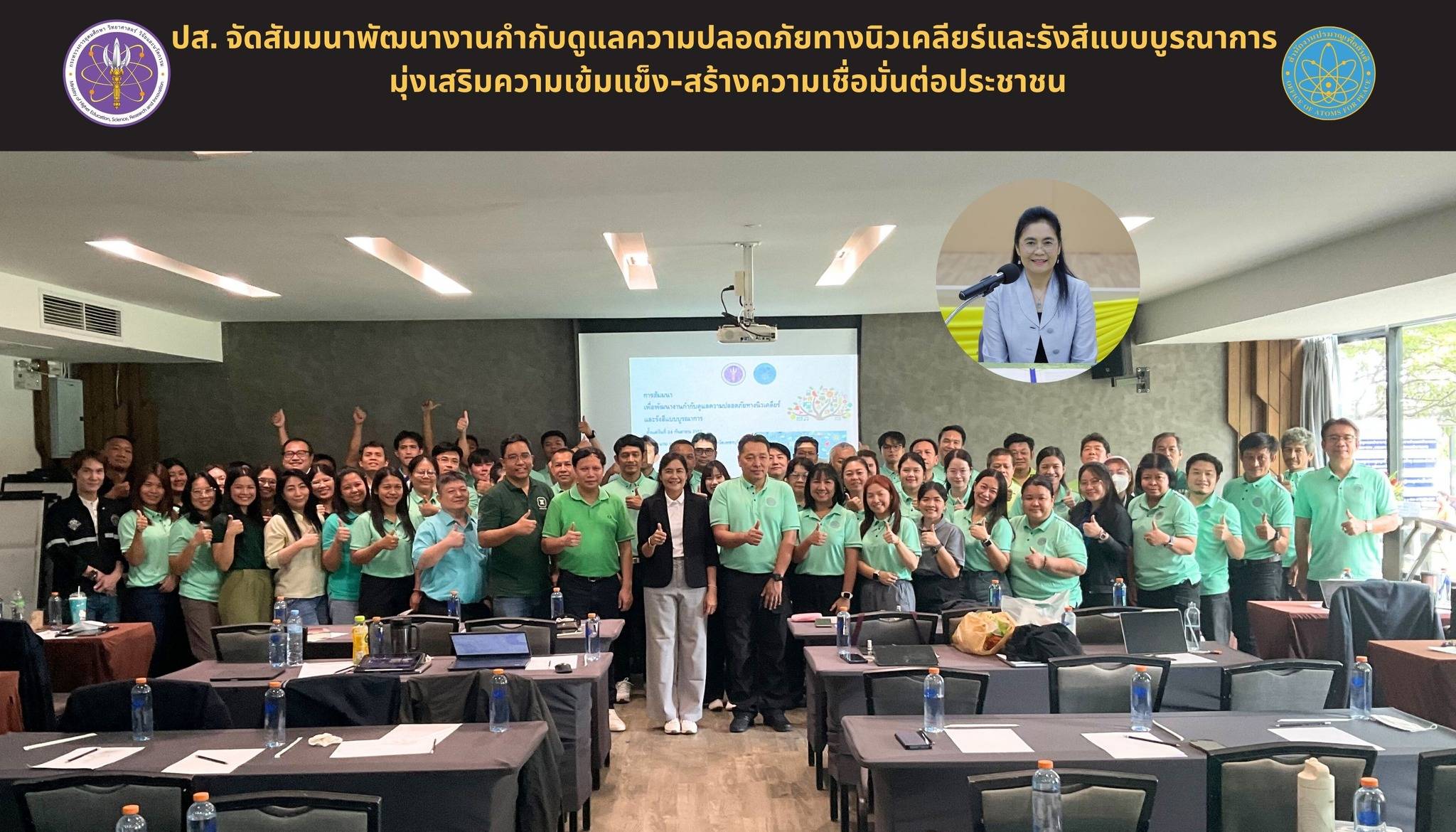 สำนักงานปรมาณูเพื่อสันติ (ปส.) กระทรวงการอุดมศึกษา วิทยาศาสตร์ วิจัยและนวัตกรรม (อว.) จัดการสัมมนาเพื่อพัฒนางานกำกับดูแลความปลอดภัยทางนิวเคลียร์และรังสีแบบบูรณาการ ระหว่างวันที่ 24 – 26 กันยายน 2568 ณ โรงแรมคอรัลทรี วิลลา หัวหิน จังหวัดเพชรบุรี โดยมีนางเพ็ญนภา กัญชนะ รองเลขาธิการ ปส. เป็นประธานในพิธีเปิด ซึ่งการสัมมนาครั้งนี้มุ่งเน้นการสร้างความเข้าใจเกี่ยวกับกฎหมาย ระเบียบ และประกาศที่มีผลบังคับใช้ภายใต้พระราชบัญญัติพลังงานนิวเคลียร์เพื่อสันติ พ.ศ. 2559 และที่แก้ไขเพิ่มเติม ให้กับบุคลากร ปส. ที่เกี่ยวข้อง จำนวน 70 คน ซึ่งในช่วงที่ผ่านมา การดำเนินการด้านการกำกับดูแลความปลอดภัยังพบประเด็นปัญหาที่ควรนำมาหารือร่วมกัน อาทิ ข้อกำหนดเกี่ยวกับเจ้าหน้าที่ความปลอดภัยทางรังสี การปรับเทียบเครื่องมือตรวจวัดทางรังสี การใช้อุปกรณ์วัดรังสีประจำตัวบุคคลให้สอดคล้องกับการใช้งานจริง ตลอดจนการสื่อสารในเชิงกฎหมายที่ต้องใช้ดุลยพินิจเพื่อให้การบังคับใช้เป็นไปในทิศทางเดียวกัน การตีความอำนาจหน้าที่ของพนักงานเจ้าหน้าที่ และการพิจารณาทบทวนกฎกระทรวงบางฉบับให้เหมาะสมกับสภาพการกำกับดูแลในปัจจุบัน