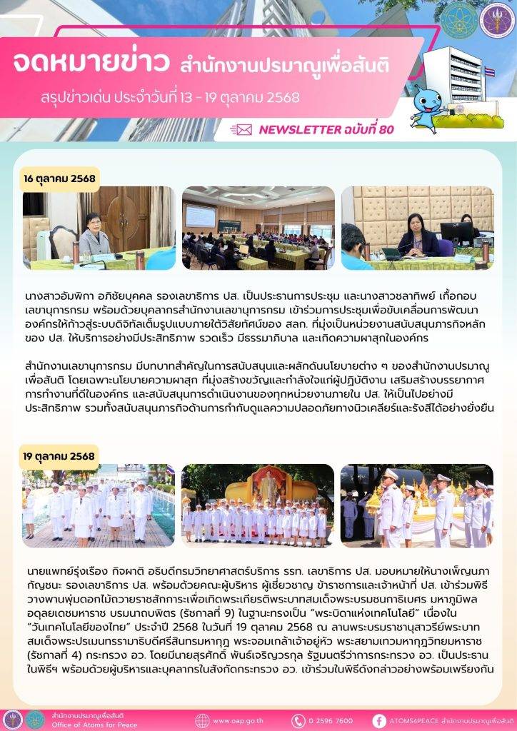 สรุปข่าวเด่นประจำสัปดาห์ ฉบับที่ 80 (13 – 19 ต.ค. 2568)สรุปข่าวเด่นประจำสัปดาห์ / 20 ตุลาคม 2568 จำนวนคนดู: 1