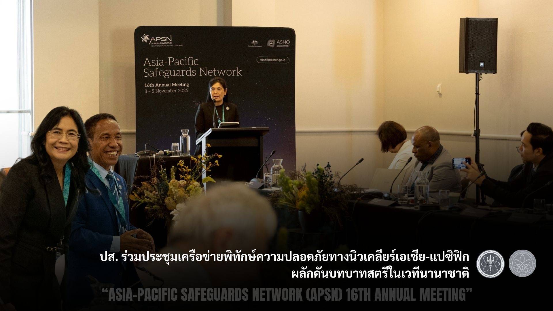 นางเพ็ญนภา กัญชนะ รองเลขาธิการสำนักงานปรมาณูเพื่อสันติ พร้อมด้วยนายรัฟฟิน มณีชยางกูร วิศวกรนิวเคลียร์ชำนาญการ เข้าร่วมการประชุมเชิงปฏิบัติการ “Asia-Pacific Safeguards Network (APSN) 16th Annual Meeting” ณ เมืองเพิร์ธ เครือรัฐออสเตรเลีย ระหว่างวันที่ 3–5 พฤศจิกายน 2568 ซึ่งจัดขึ้นภายใต้ความร่วมมือระหว่าง Australian Safeguards and Non-Proliferation Office (ASNO) และทบวงการพลังงานปรมาณูระหว่างประเทศ (IAEA) เพื่อแลกเปลี่ยนประสบการณ์และแนวทางพัฒนาการพิทักษ์ความปลอดภัยทางนิวเคลียร์ในภูมิภาค