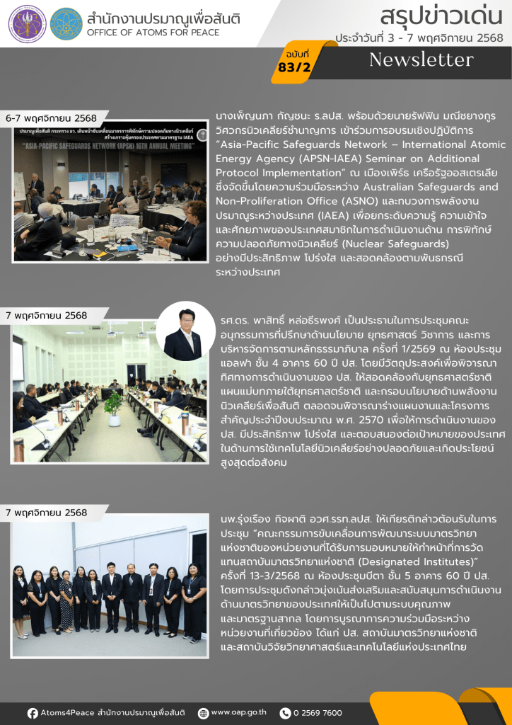 สรุปข่าวเด่นประจำสัปดาห์ ฉบับที่ 83/2 (3 – 7 พ.ย. 2568)สรุปข่าวเด่นประจำสัปดาห์ / 10 พฤศจิกายน 2568 จำนวนคนดู: 1