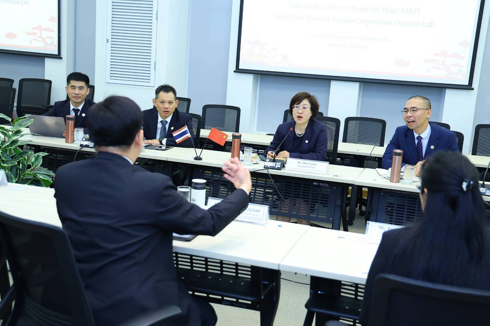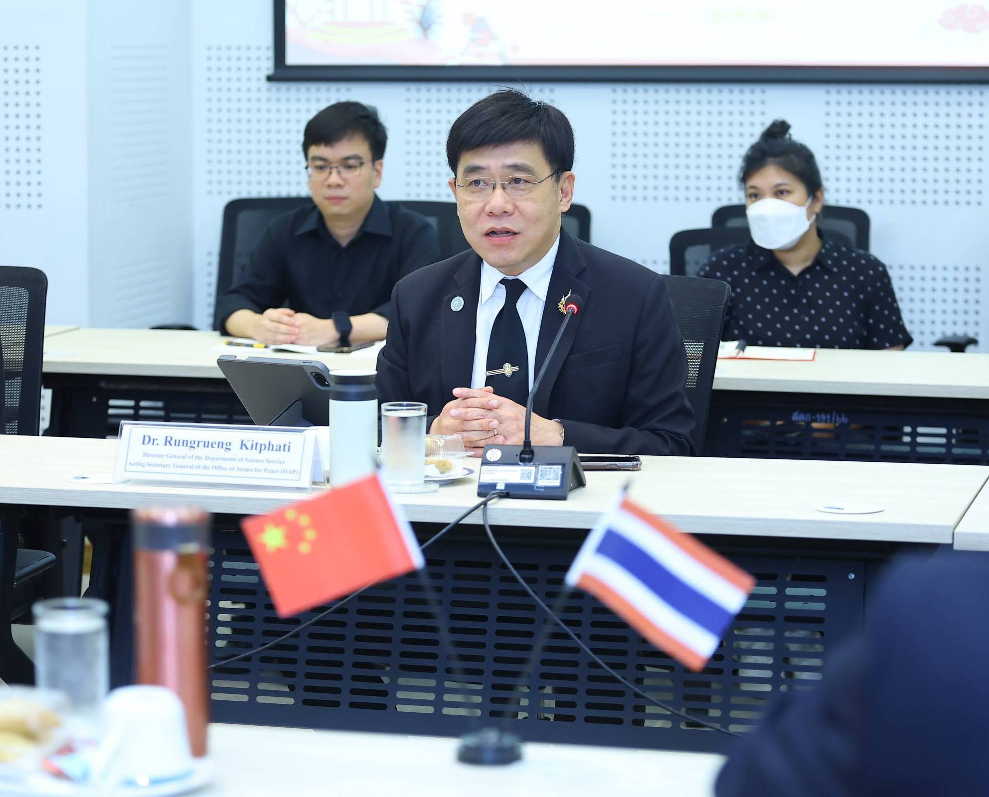วันที่ 12 พฤศจิกายน 2568 นายแพทย์รุ่งเรือง กิจผาติ อธิบดีกรมวิทยาศาสตร์บริการ รักษาราชการแทนเลขาธิการ ปส. ให้การต้อนรับ Ms. Mao Yawei ประธาน บริษัท ไชน่า เนชั่นแนล นิวเคลียร์ คอร์ปอเรชัน โอเวอร์ซีส จำกัด (China National Nuclear Corporation Overseas Ltd.: CNOS) ซึ่งเป็นบริษัทในเครือของ China National Nuclear Corporation (CNNC) พร้อมด้วยคณะผู้แทน ในโอกาสเข้าหารือประเด็นการพัฒนาความร่วมมือด้านการกำกับดูแลและการใช้ประโยชน์จากพลังงานนิวเคลียร์ โดยเฉพาะการเตรียมการเพื่อการพัฒนาโครงการโรงไฟฟ้านิวเคลียร์มาตรฐานปลอดภัยขนาดเล็ก (Small Modular Reactor: SMR) รวมทั้งประเด็นอื่น ๆ ที่เกี่ยวข้อง