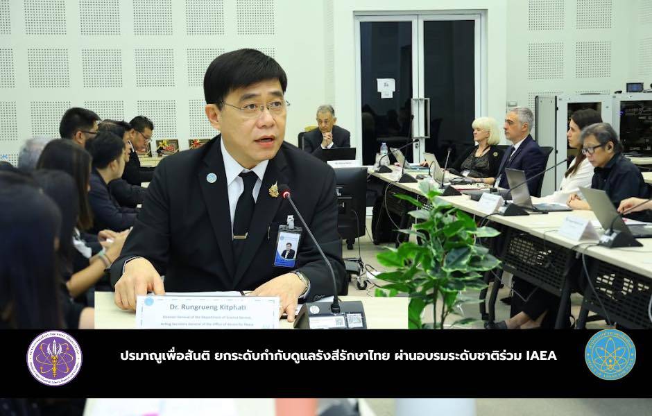 นพ.รุ่งเรือง กิจผาติ อธิบดีกรมวิทยาศาสตร์บริการ รักษาราชการแทนเลขาธิการสำนักงานปรมาณูเพื่อสันติ เป็นประธานเปิดการอบรมระดับชาติ “National Training Course on Regulatory Control of Radiotherapy” ซึ่งจัดโดยสำนักงานปรมาณูเพื่อสันติ (ปส.) กระทรวงการอุดมศึกษา วิทยาศาสตร์ วิจัยและนวัตกรรม (อว.) ระหว่างวันที่ 17–21 พฤศจิกายน 2568 ณ ห้องแอลฟา ชั้น 4 อาคาร 60 ปี ปส. โดยมีผู้แทนจากทบวงการพลังงานปรมาณูระหว่างประเทศ (IAEA) และสมาคมรังสีรักษาและมะเร็งวิทยาแห่งประเทศไทย เข้าร่วมกว่า 35 คน