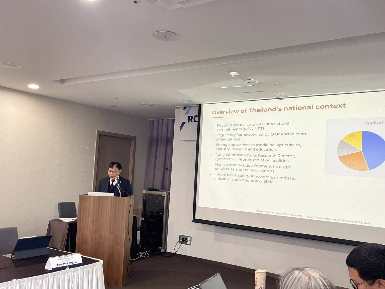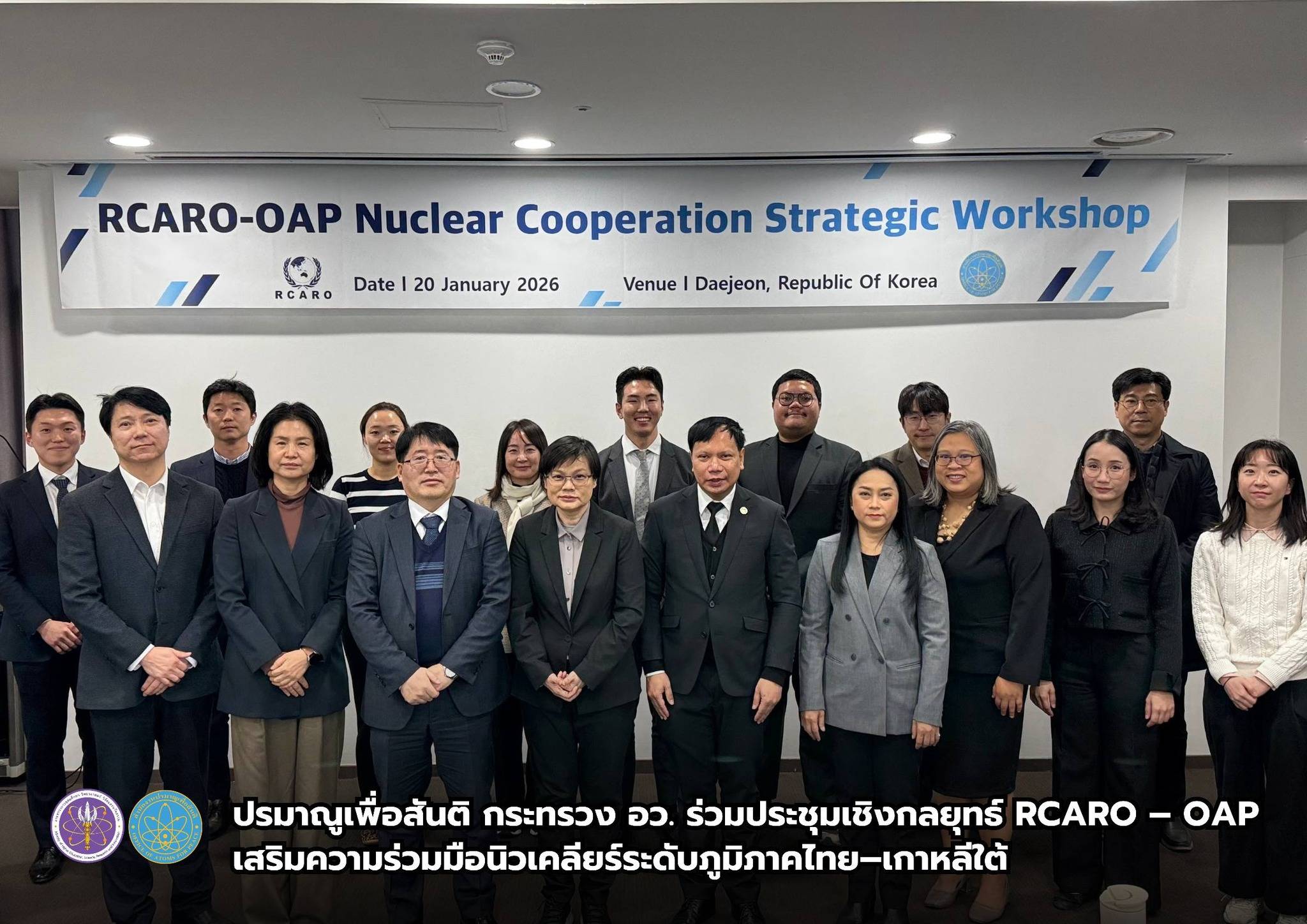 นางสาวอัมพิกา อภิชัยบุคคล รองเลขาธิการสำนักงานปรมาณูเพื่อสันติ (ปส.) กระทรวงการอุดมศึกษา วิทยาศาสตร์ วิจัยและนวัตกรรม (อว.) เข้าร่วมการประชุม RCARO – OAP Strategic Workshop on Nuclear Cooperation ระหว่างวันที่ 19 – 23 มกราคม 2569 ณ เมืองแดจอน สาธารณรัฐเกาหลี ในฐานะผู้ประสานงานแห่งชาติภายใต้กรอบความร่วมมือ Regional Cooperative Agreement (RCA) ของทบวงการพลังงานปรมาณูระหว่างประเทศ (International Atomic Energy Agency: IAEA) หรือ National RCA Representative (NR) พร้อมด้วยคณะผู้แทน ปส.
