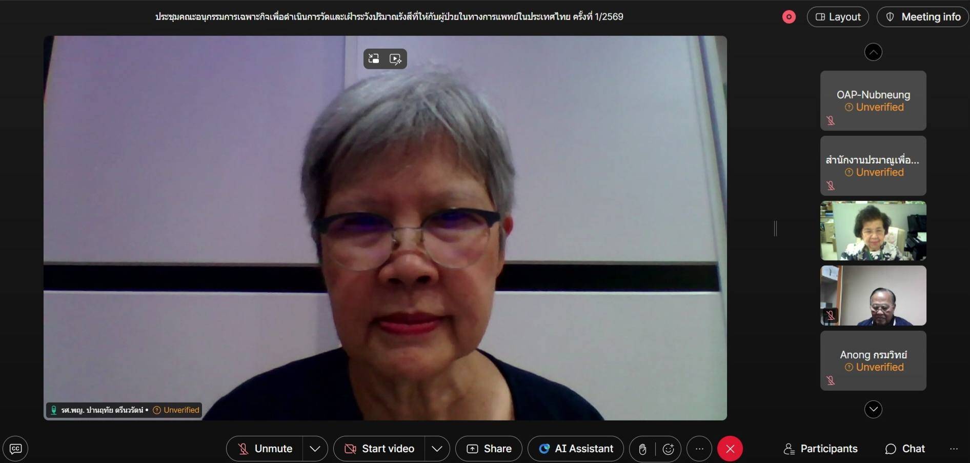วันที่ 6 กุมภาพันธ์ 2569 ปส. จัดประชุมคณะอนุกรรมการเฉพาะกิจเพื่อดำเนินการวัดและเฝ้าระวังปริมาณรังสีที่ให้กับผู้ป่วยในทางการแพทย์ในประเทศไทย ครั้งที่ 1/2569 ณ ห้องประชุม 313 และผ่านสื่ออิเล็กทรอนิกส์ โดยมี รศ.พญ.ปานฤทัย ตรีนวรัตน์ เป็นประธานการประชุม เพื่อพิจารณาแนวทางการดำเนินงานด้านการควบคุมและติดตามปริมาณรังสีทางการแพทย์ให้เป็นไปตามมาตรฐานสากล