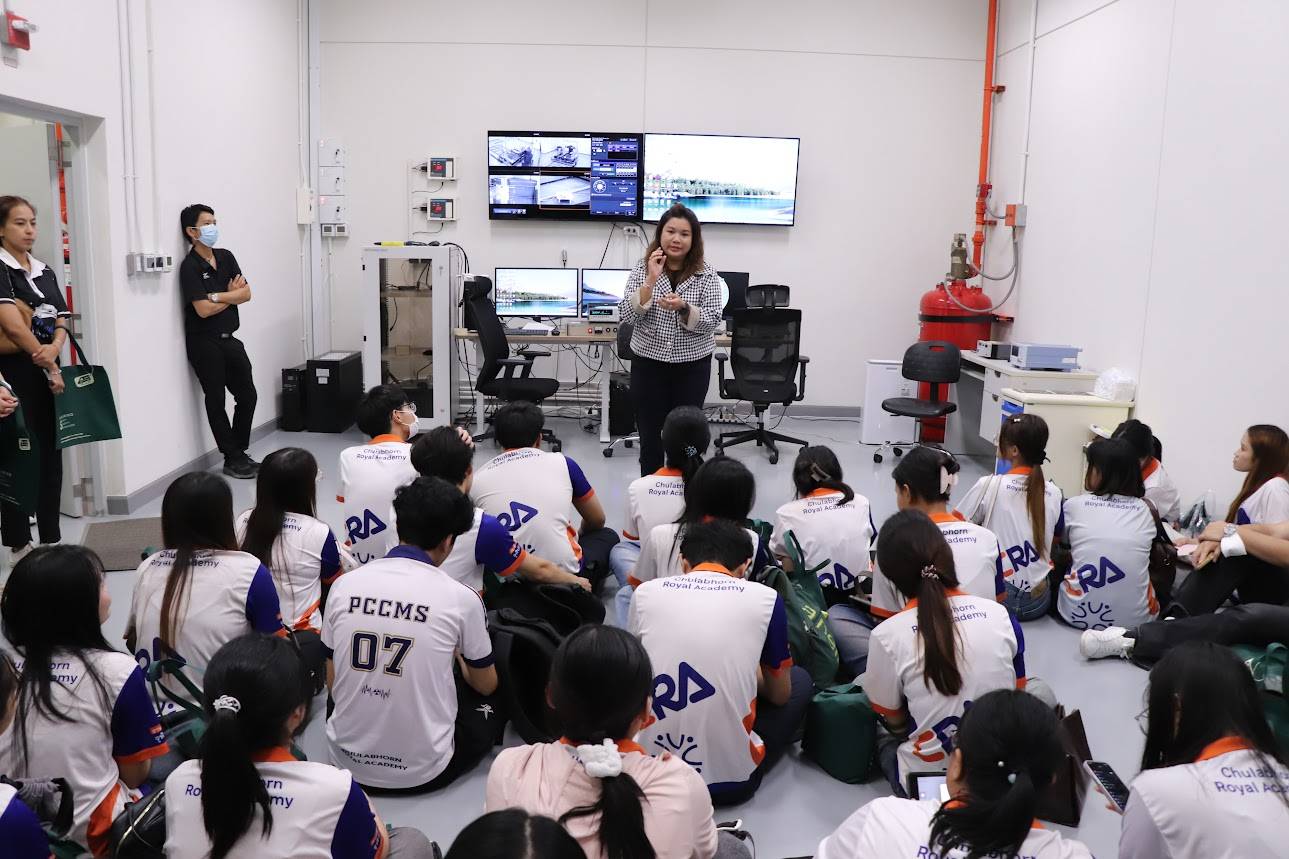 วันที่ 16 กุมภาพันธ์ 2569 อาจารย์และนักศึกษาจากโรงเรียนรังสีเทคนิค คณะเทคโนโลยีวิทยาศาสตร์สุขภาพ ราชวิทยาลัยจุฬาภรณ์ จำนวน 80 คน เข้าเยี่ยมชมสำนักงานปรมาณูเพื่อสันติ (ปส.) ณ อาคาร 60 ปี ปส. เพื่อเสริมสร้างความรู้และความเข้าใจด้านมาตรฐานการวัดรังสีก่อไอออน และบทบาทของหน่วยงานด้านการกำกับดูแลความปลอดภัยทางนิวเคลียร์และรังสีของประเทศ โดยได้เยี่ยมชมห้องปฏิบัติการมาตรฐานการวัดรังสีก่อไอออน และห้องปฏิบัติการวัดรังสีในสิ่งแวดล้อม ซึ่งเป็นโครงสร้างพื้นฐานสำคัญในการตรวจวัด เฝ้าระวัง และควบคุมคุณภาพการวัดรังสี เพื่อให้มีความถูกต้อง แม่นยำ และเป็นไปตามมาตรฐานสากล