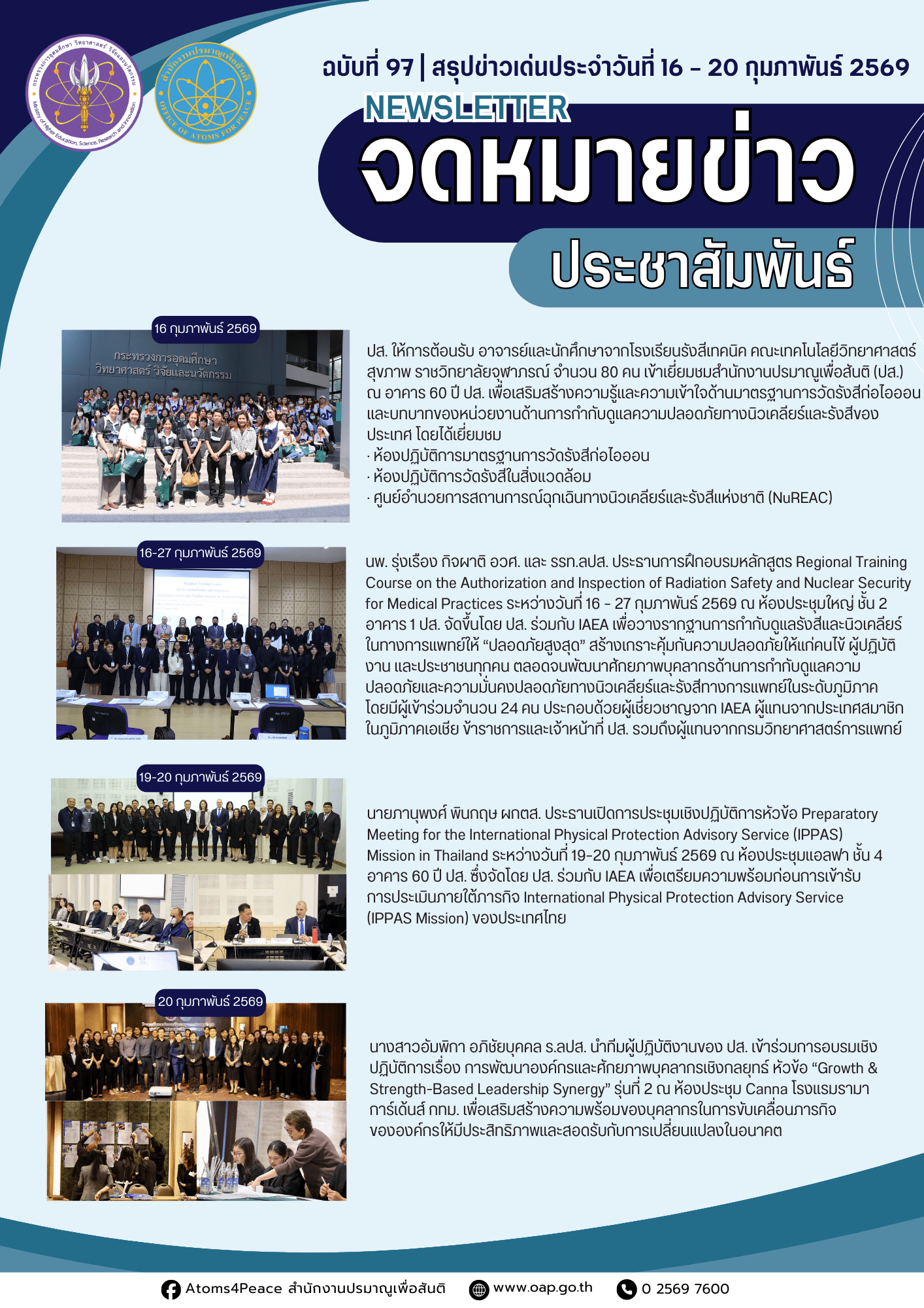 สรุปข่าวเด่นประจำสัปดาห์ ฉบับที่ 97 (16- 20 ก.พ. 2569)สรุปข่าวเด่นประจำสัปดาห์ / 23 กุมภาพันธ์ 2569 จำนวนคนดู: 2