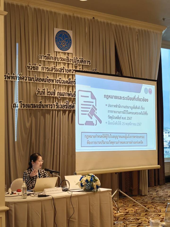 การฝึกอบรมครั้งนี้มุ่งเน้นการเสริมสร้างความรู้และความตระหนักในประเด็นสำคัญ ได้แก่ กฎกระทรวงการพิทักษ์ความปลอดภัยทางนิวเคลียร์ การรายงานปริมาณวัสดุนิวเคลียร์ และการแจ้งข้อมูลการวิจัยและพัฒนาวัฏจักรเชื้อเพลิงนิวเคลียร์ที่ไม่ใช้วัสดุนิวเคลียร์ เพื่อให้ผู้เข้าร่วมสามารถนำความรู้ไปประยุกต์ใช้ในการปฏิบัติงานได้อย่างมีประสิทธิภาพ นอกจากนี้ ยังเป็นเวทีสำคัญในการแลกเปลี่ยนประสบการณ์ มุมมอง และข้อเสนอแนะระหว่างสำนักงานปรมาณูเพื่อสันติและสถาบันอุดมศึกษา ซึ่งถือเป็นรากฐานสำคัญในการพัฒนาศักยภาพด้านนิวเคลียร์ของประเทศให้มีความเข้มแข็งและยั่งยืนในระยะยาว