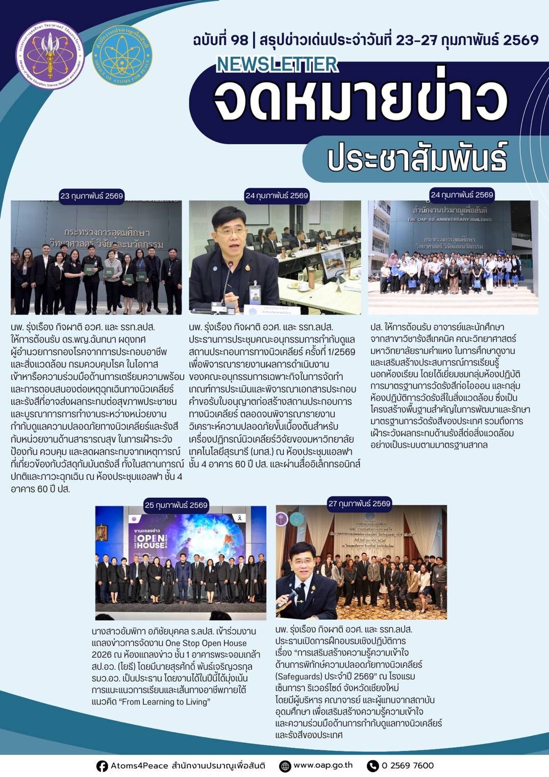 สรุปข่าวเด่นประจำสัปดาห์ ฉบับที่ 98 (23- 27 ก.พ. 2569)สรุปข่าวเด่นประจำสัปดาห์ / 2 มีนาคม 2569 จำนวนคนดู: 1
