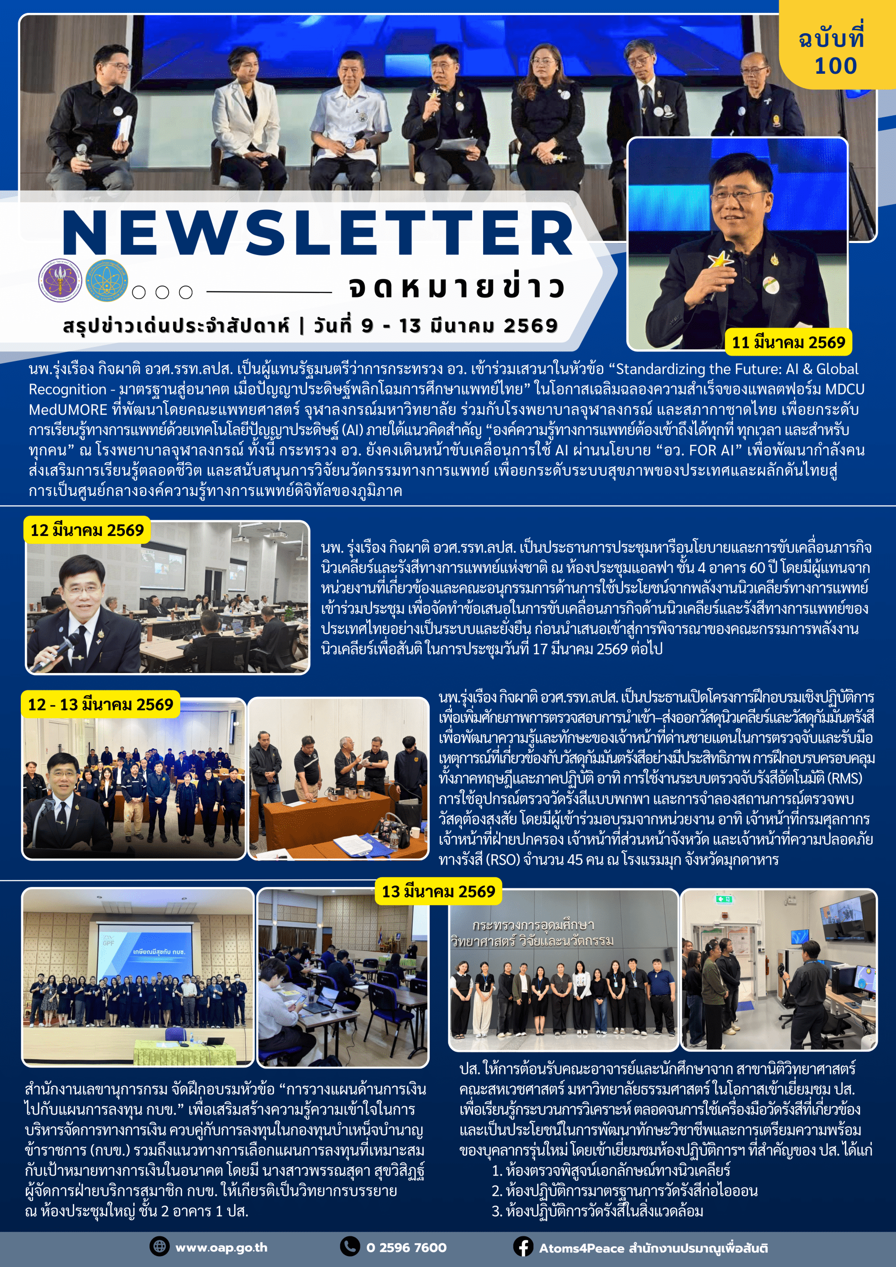 สรุปข่าวเด่นประจำสัปดาห์ ฉบับที่ 100 (3 – 13 มี.ค. 2569)สรุปข่าวเด่นประจำสัปดาห์ / 16 มีนาคม 2569 จำนวนคนดู: 1