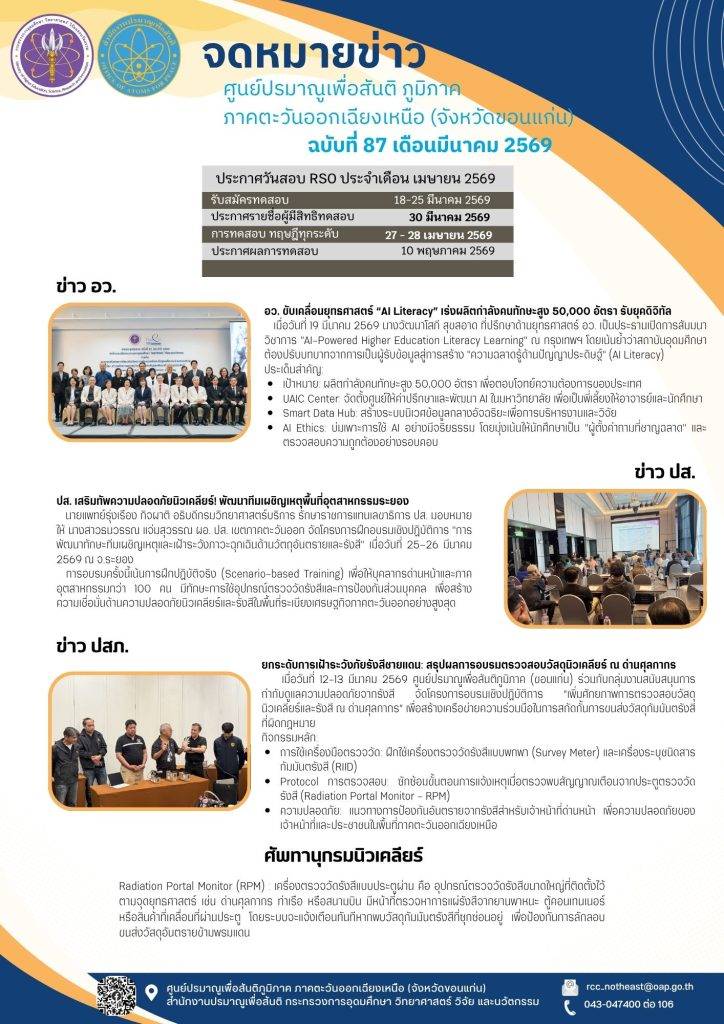 จดหมายข่าว ศูนย์ปรมาณูเพื่อสันติภูมิภาค ภาคตะวันออกเฉียงเหนือ ฉบับที่ 81 ประจำเดือน มีนาคม พ.ศ. 2569จดหมายข่าวศูนย์ปรมาณูเพื่อสันติภูมิภาค / 10 เมษายน 2569 จำนวนคนดู: 0