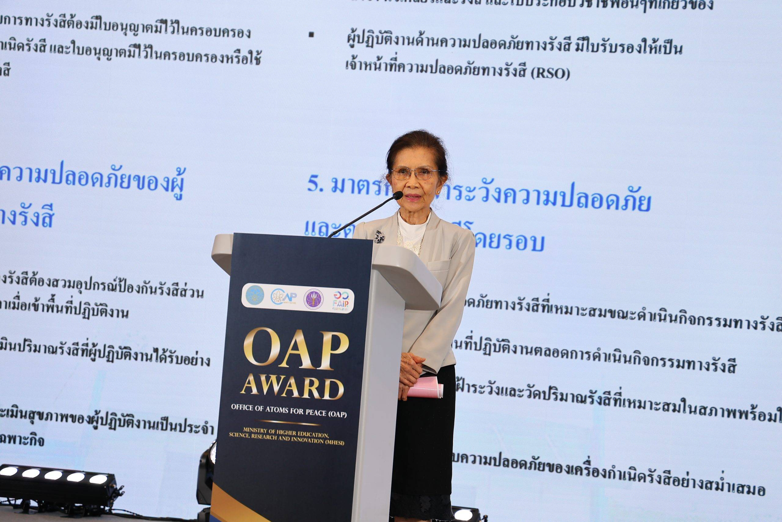 On 14 August 2025, the Office of Atoms for Peace (OAP) presented the OAP Award at the Queen Sirikit National Convention Center to 53 organizations excelling in nuclear and radiation safety, as part of a key national strategy under the Ministry of Higher Education, Science, Research and Innovation (MHESI). Awards were given in four categories: